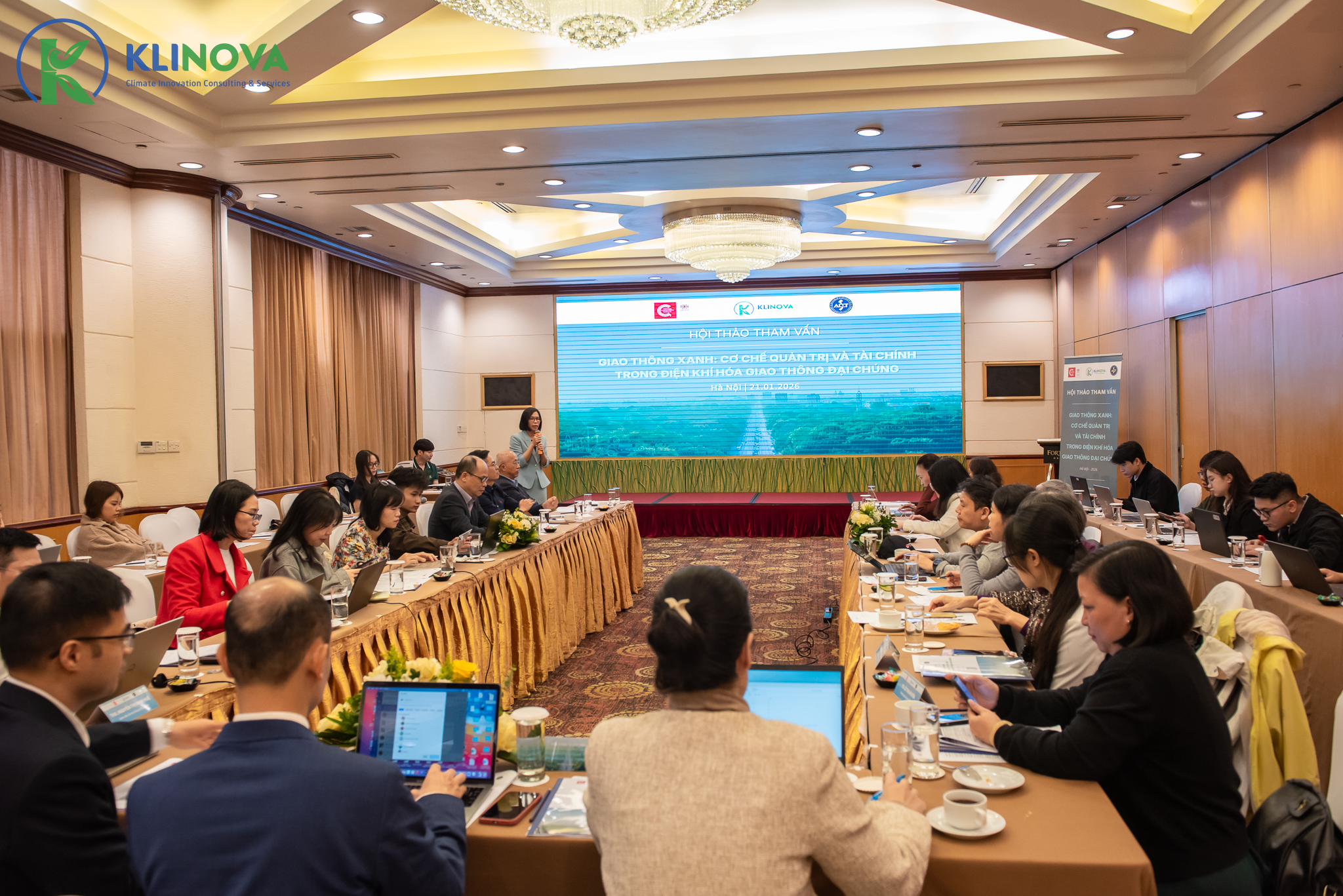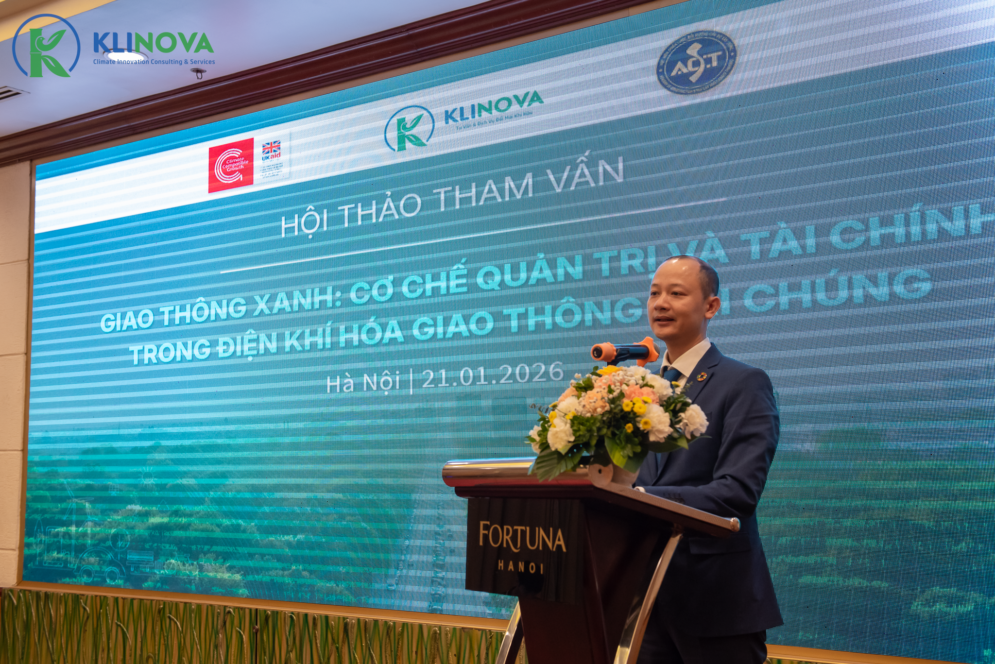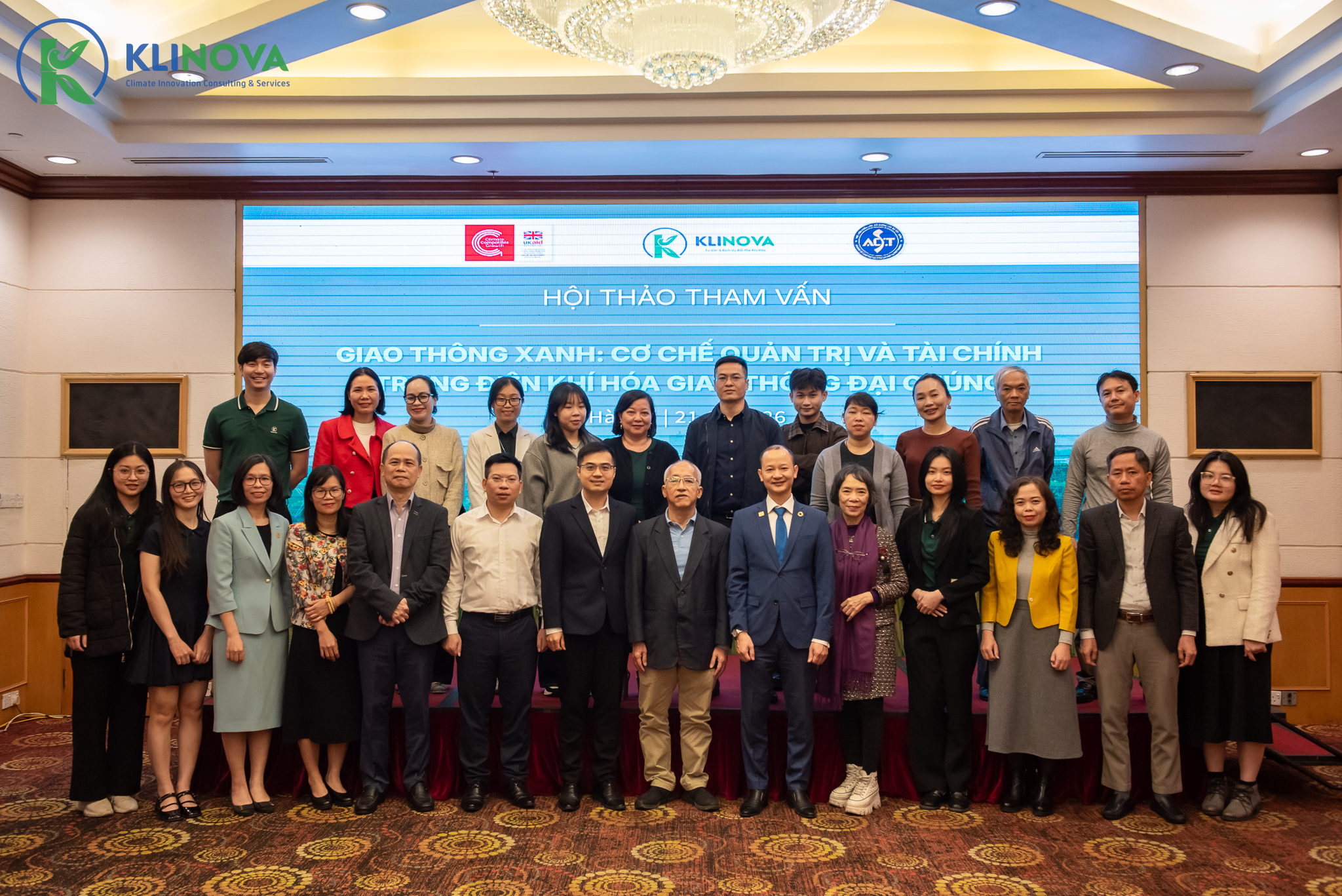 Against this scenario, the Consultation Workshop on “Green Transport: Governance and Financial Mechanisms for the Electrification of Popular Transport” was held on 21 January 2026 in Hanoi as part of the VK E-MOBI project. The workshop was co-organised by KLINOVA and the Academy Of Construction Strategy And Cadres Training in Vietnam (ACST), with funding support from the Climate Compatible Growth Fund (UKAid). The event brought together a wide range of participants from government agencies, research institutes, universities, financial and development organisations, as well as experts in transport, environment, and public policy.