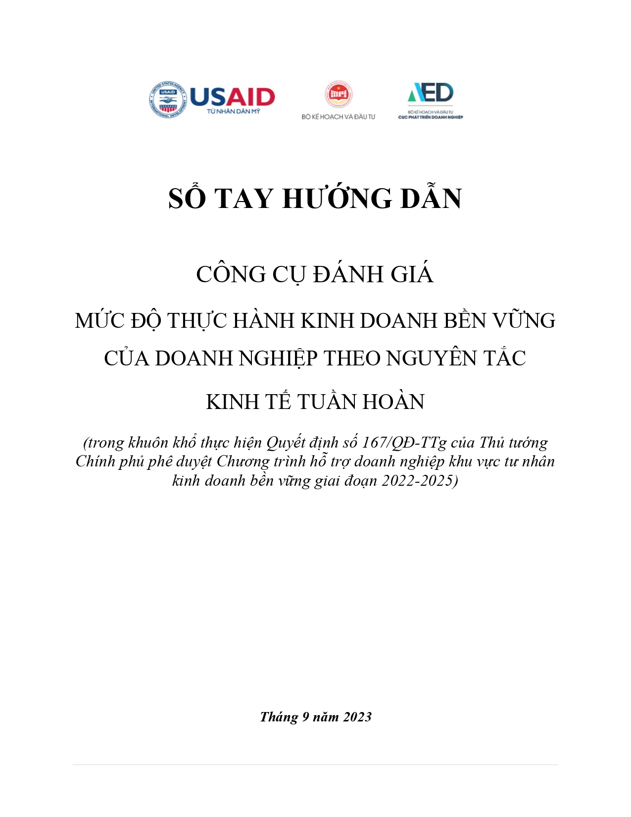 Sổ tay hướng dẫn: công cụ đánh giá mức độ thực hành kinh doanh bền vững của doanh nghiệp theo nguyên tắc kinh tế tuần hoàn