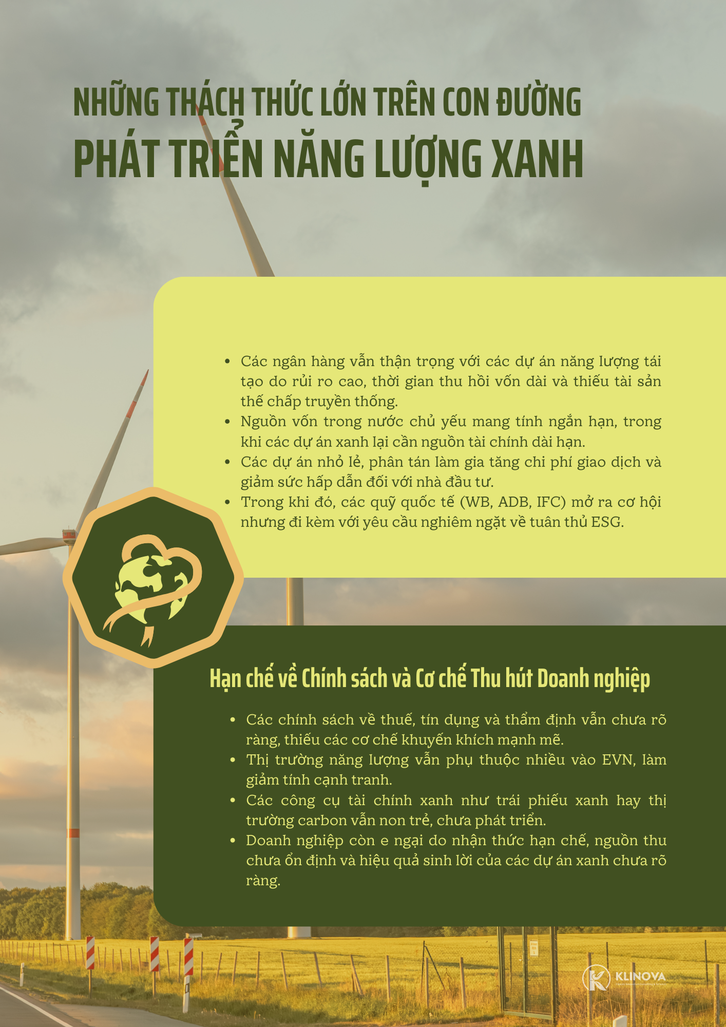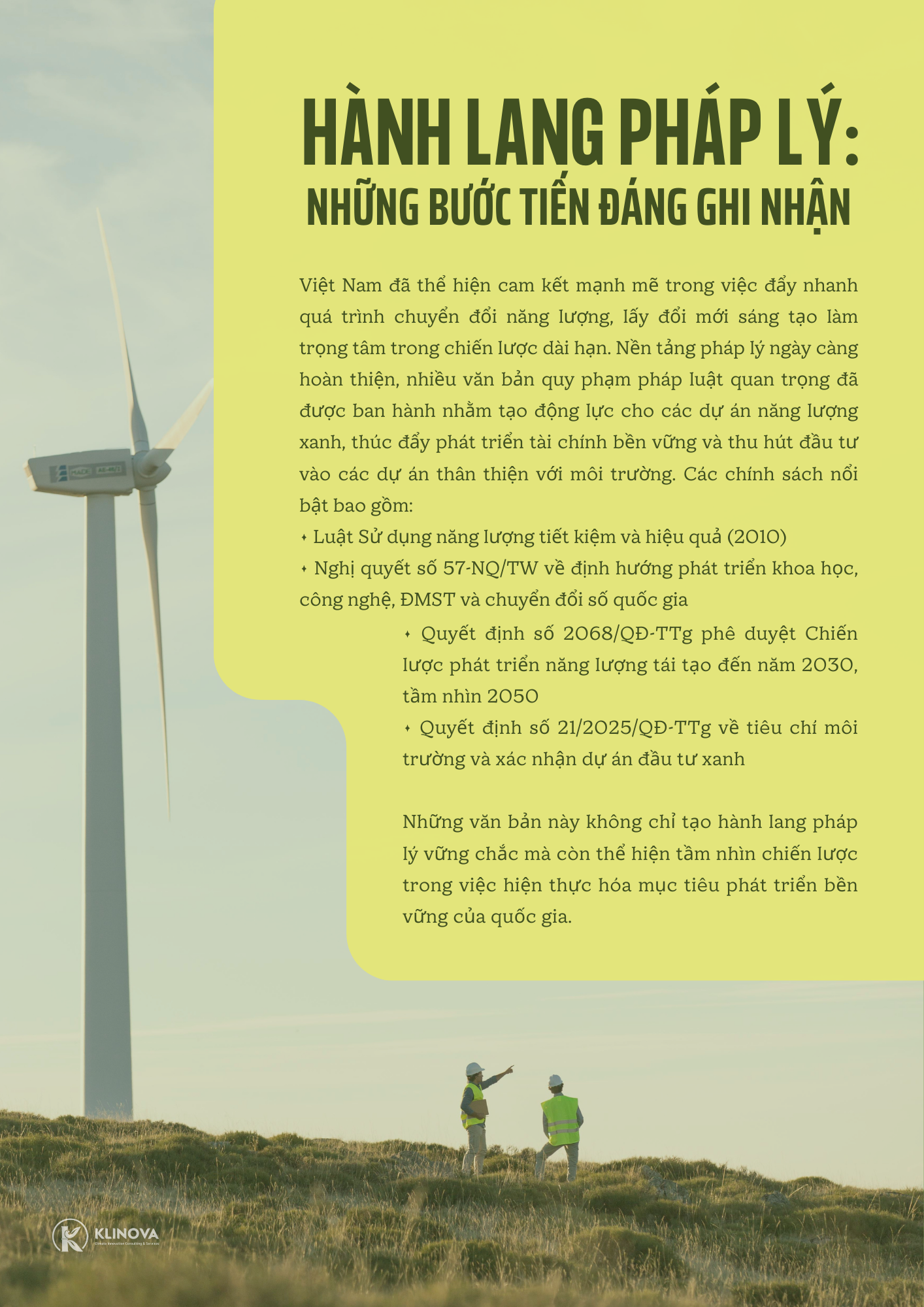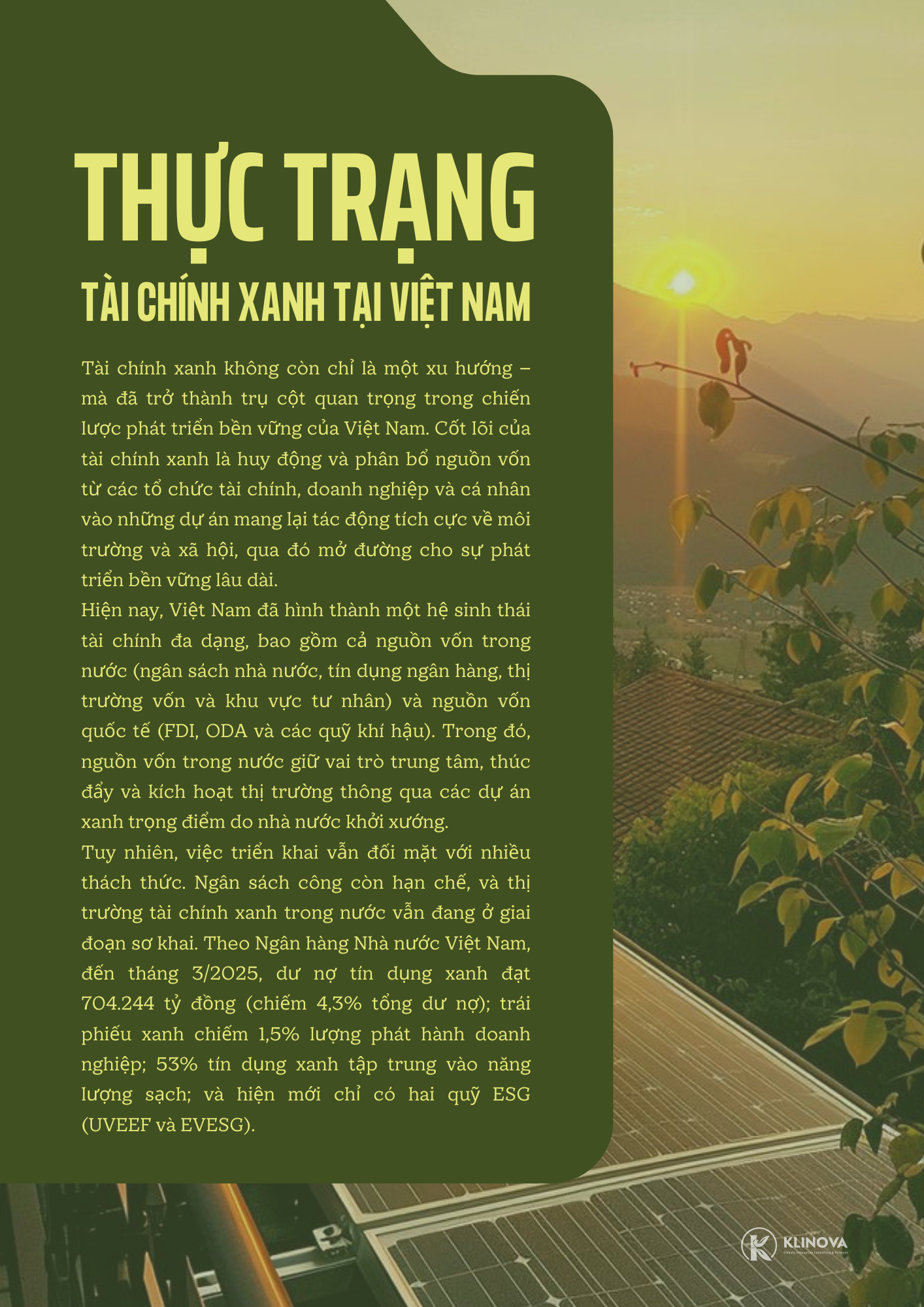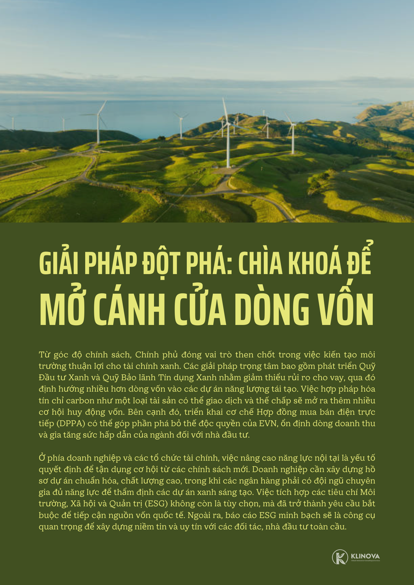 Hành trình ĐMST NL của Việt Nam là một hành trình đầy thách thức nhưng cũng vô cùng tiềm năng. Bài toán vốn có lời giải khi và chỉ khi có sự phối hợp nhịp nhàng giữa Nhà nước (với vai trò kiến tạo thể chế và chính sách), Ngân hàng (với vai trò dẫn vốn thông minh) và Doanh nghiệp (với vai trò tiên phong và sáng tạo). KLINOVA tự hào được đồng hành cùng các doanh nghiệp trên hành trình này, cung cấp các giải pháp tư vấn toàn diện từ chiến lược, tài chính đến kỹ thuật, biến những thách thức thành cơ hội phát triển bền vững.
