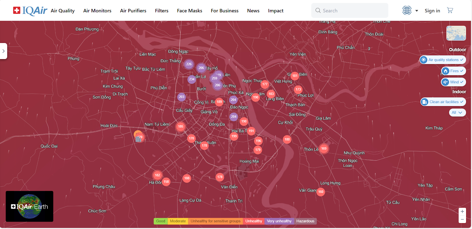 Ảnh: Dữ liệu chất lượng không khí lúc 9h ngày 09/12/2025 - Theo IQAir