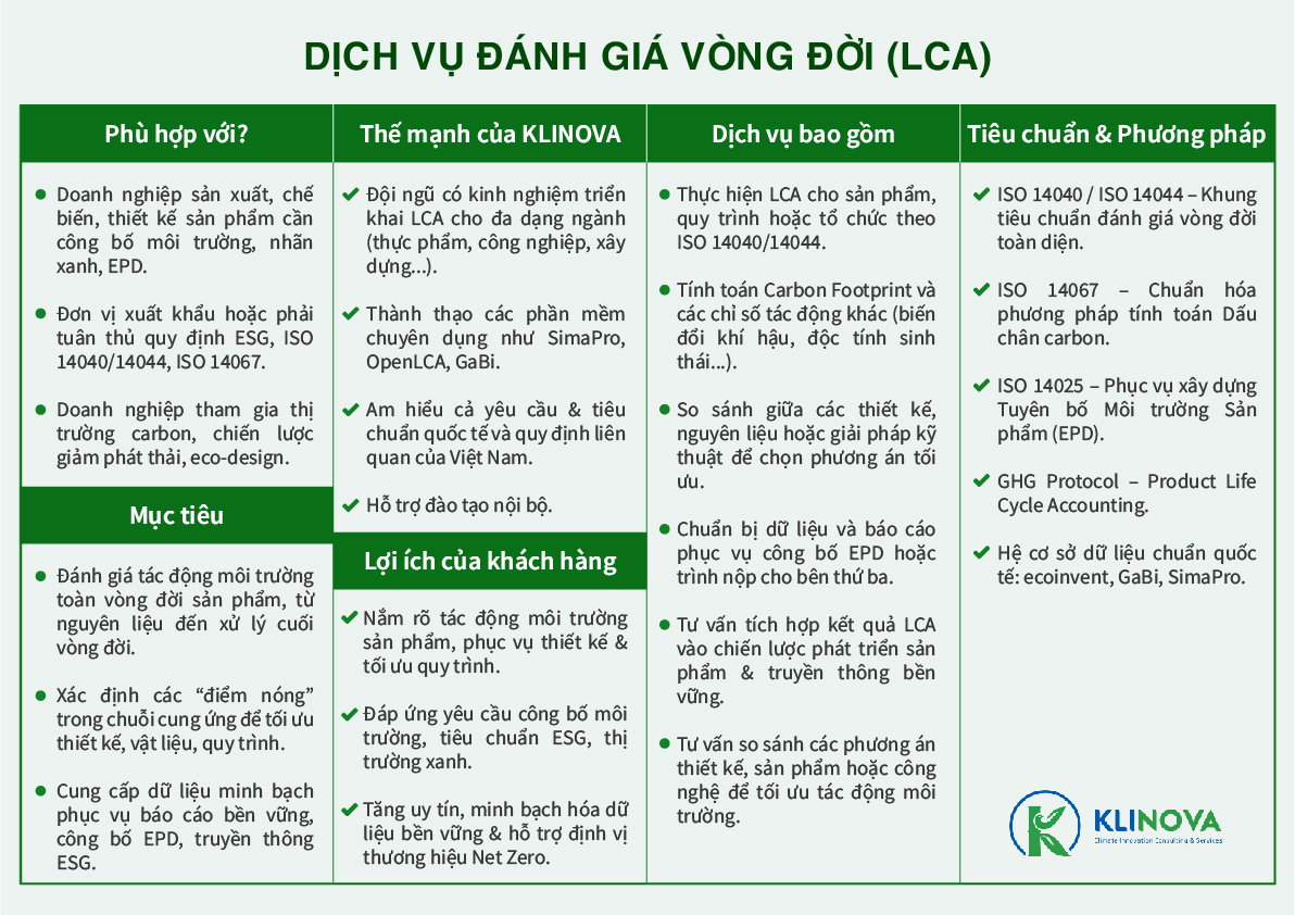 Dịch vụ Đánh giá vòng đời sản phẩm (LCA)